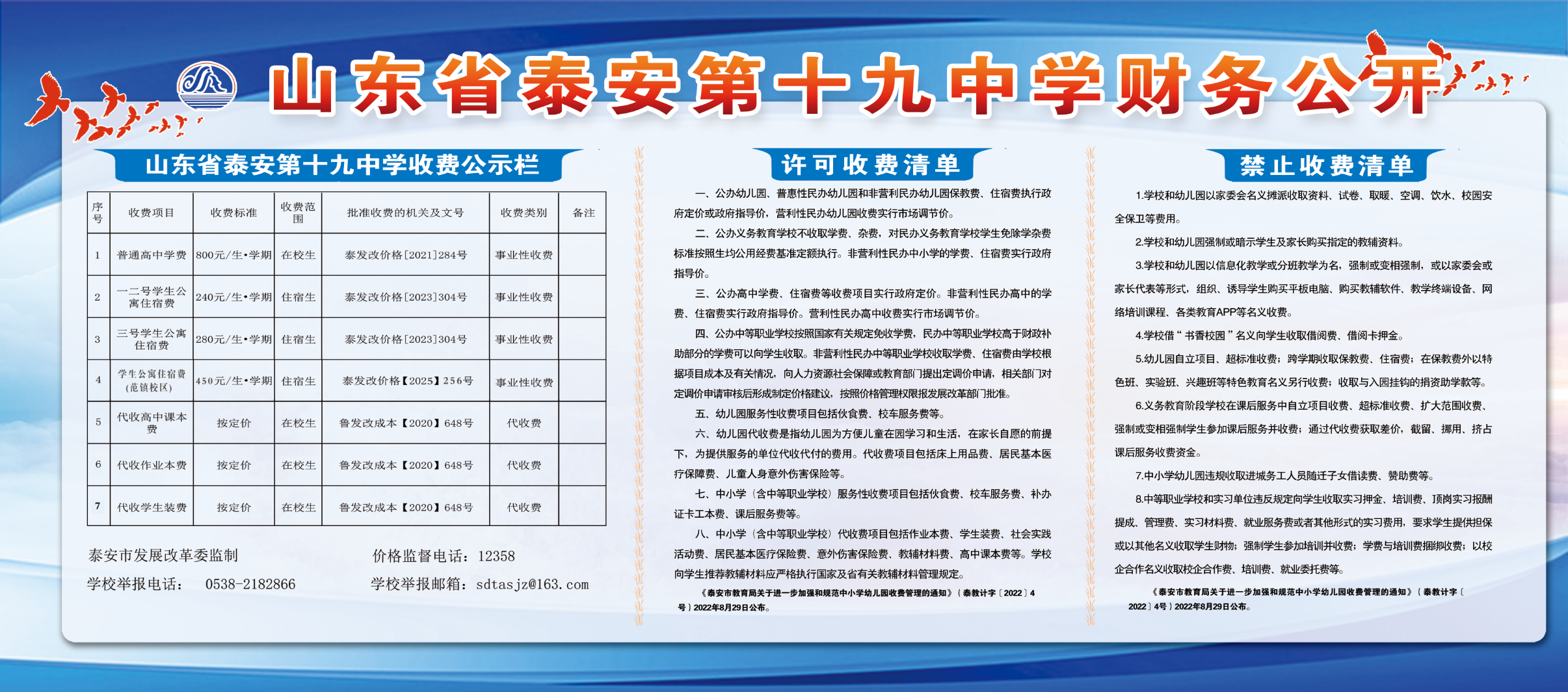 山东省泰安第十九中学财务公开